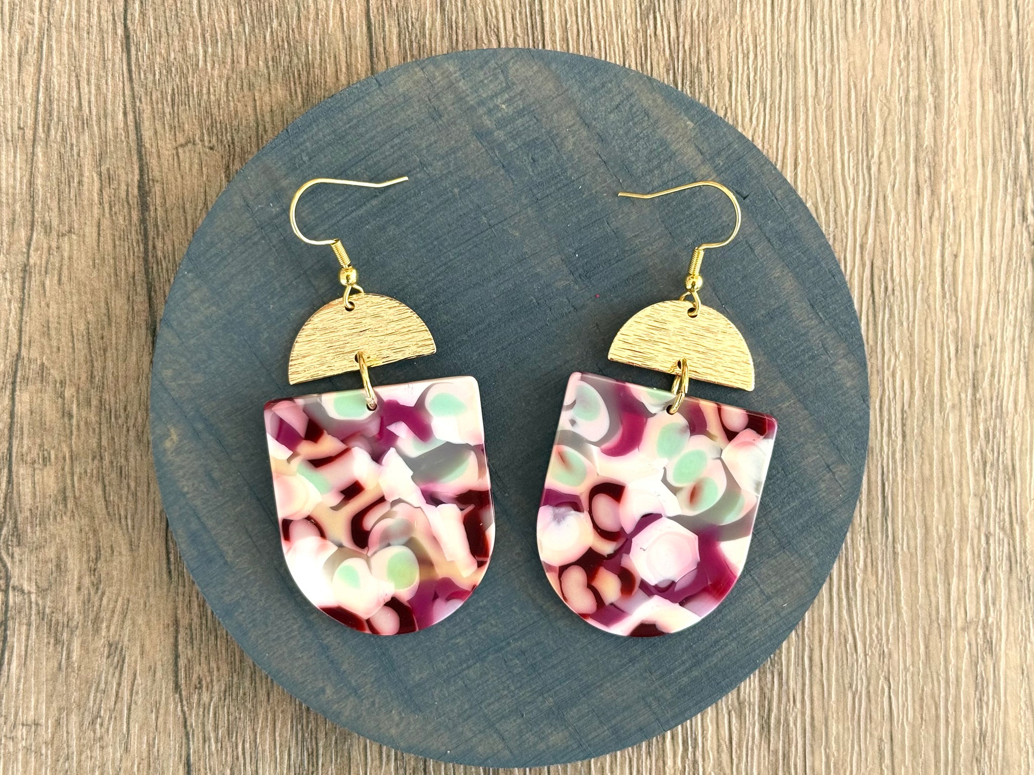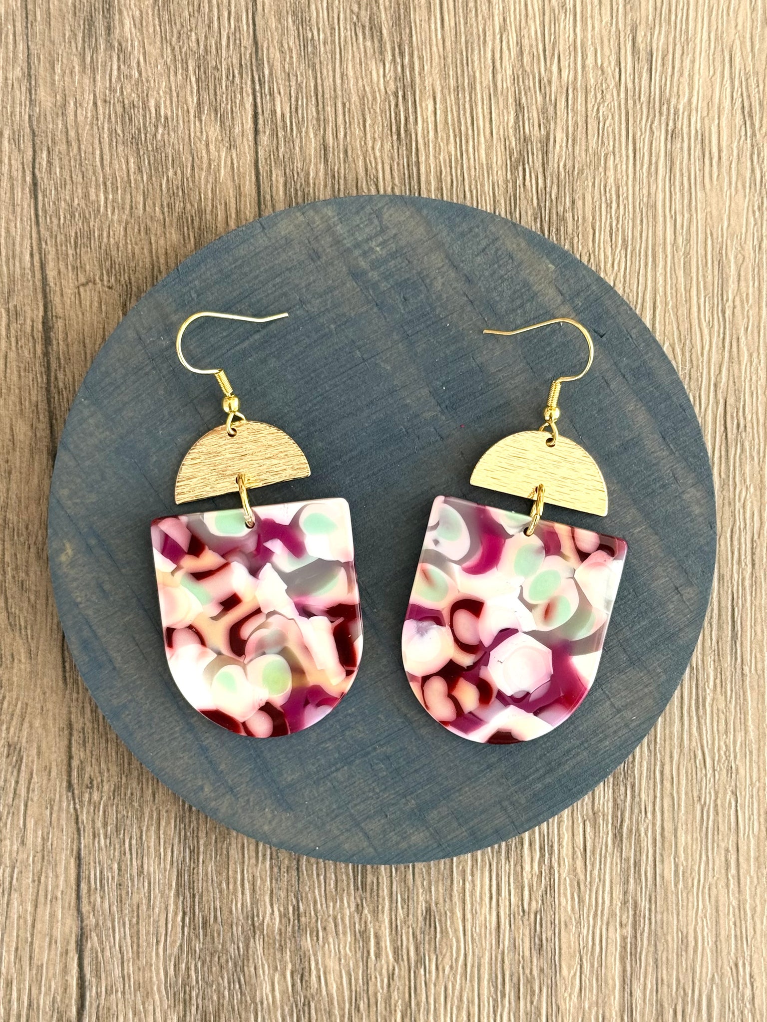 Pink Ivory Mint Green Big Acrylic Statement Dangle Earrings - Nora