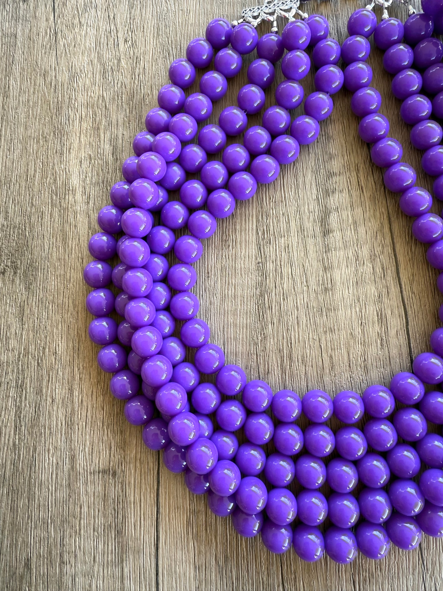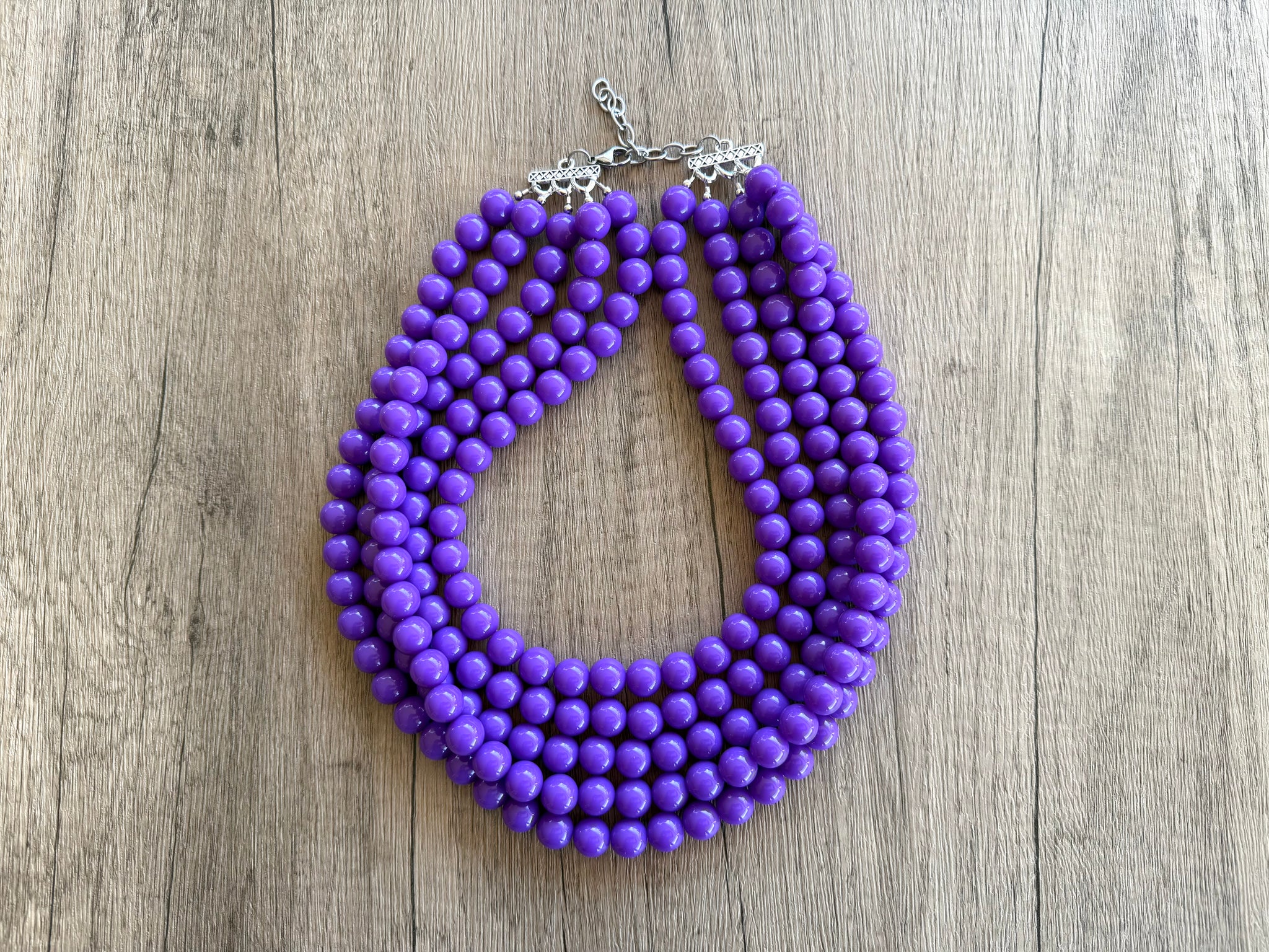 A big 12mm beaded multi strand statement necklace made with purple acrylic beads. The necklace has some weight to it in the 5 and 6 strand versions.