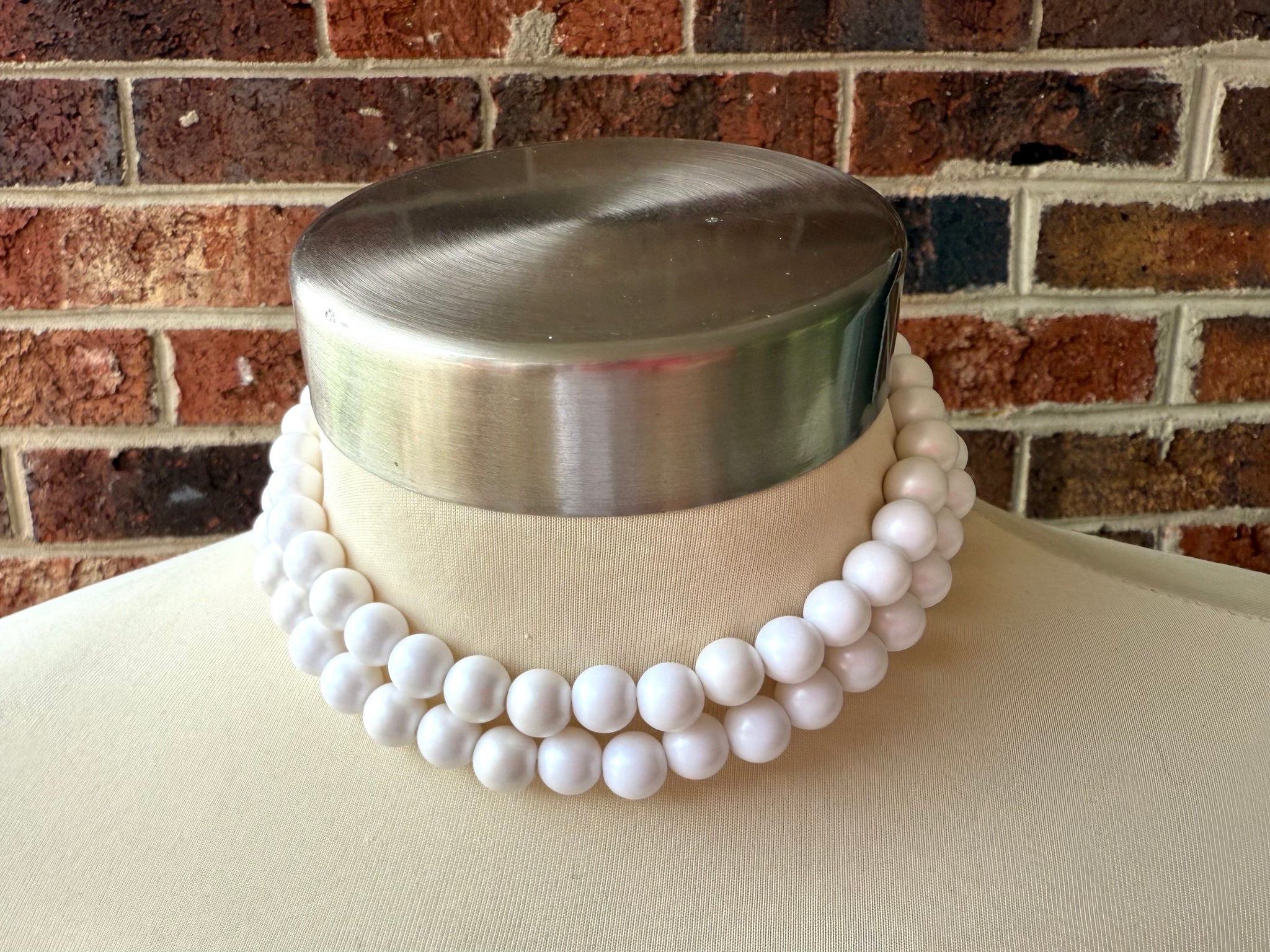 White Pearl Acrylic Choker Beaded Chunky Multi Strand Statement Necklace - Alana