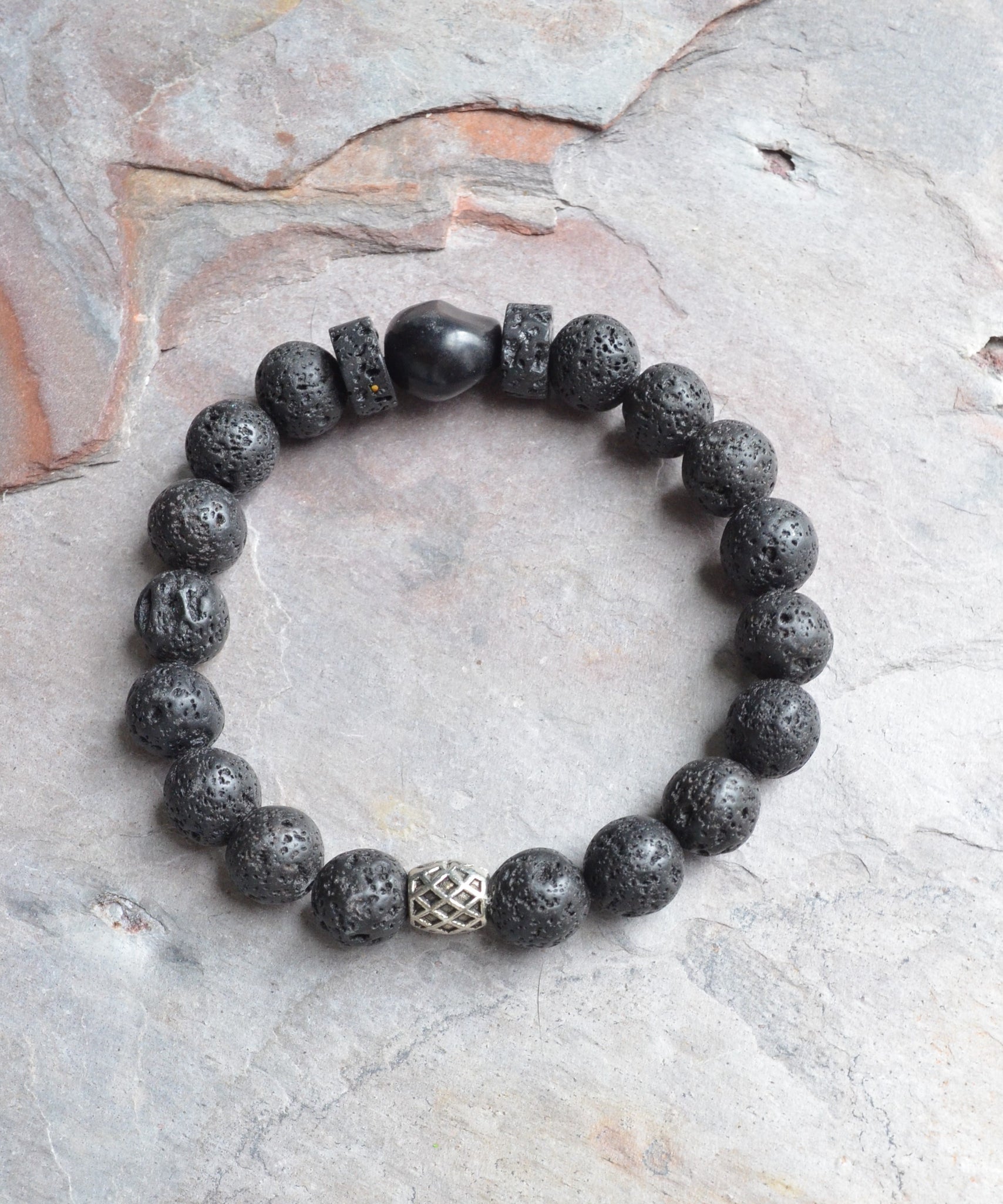 Skull Stretch Bracelet, Mens Lava Rock Bracelet, Women's Bracelet