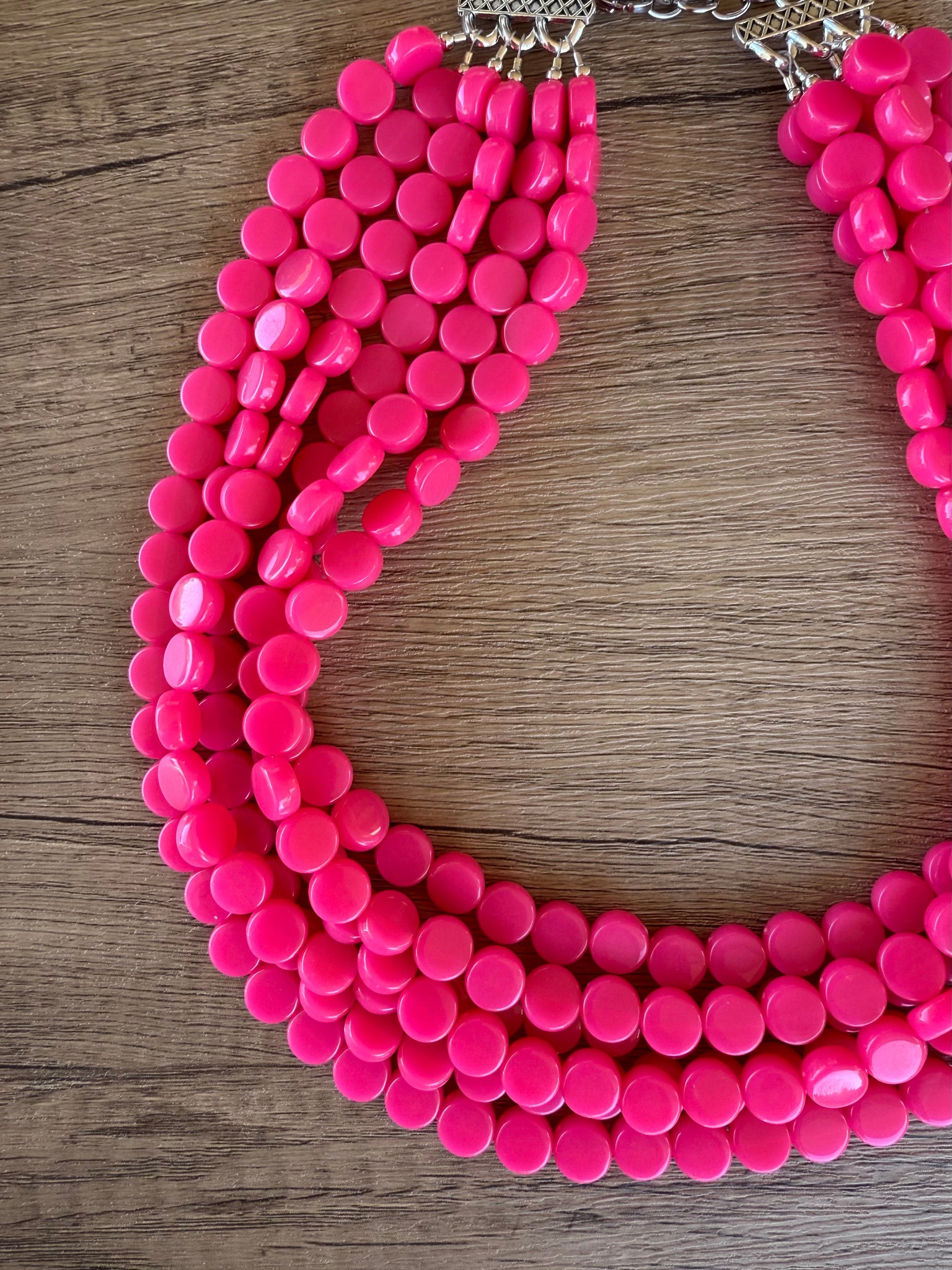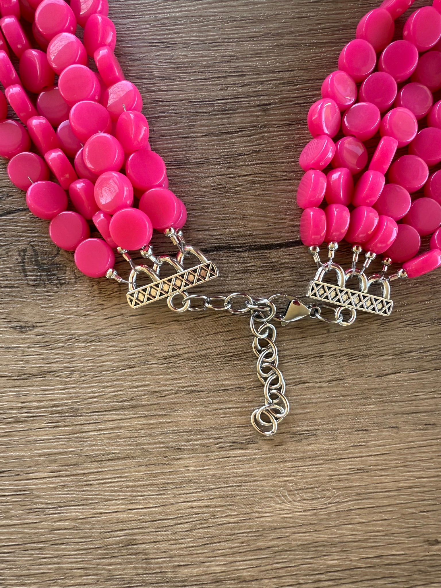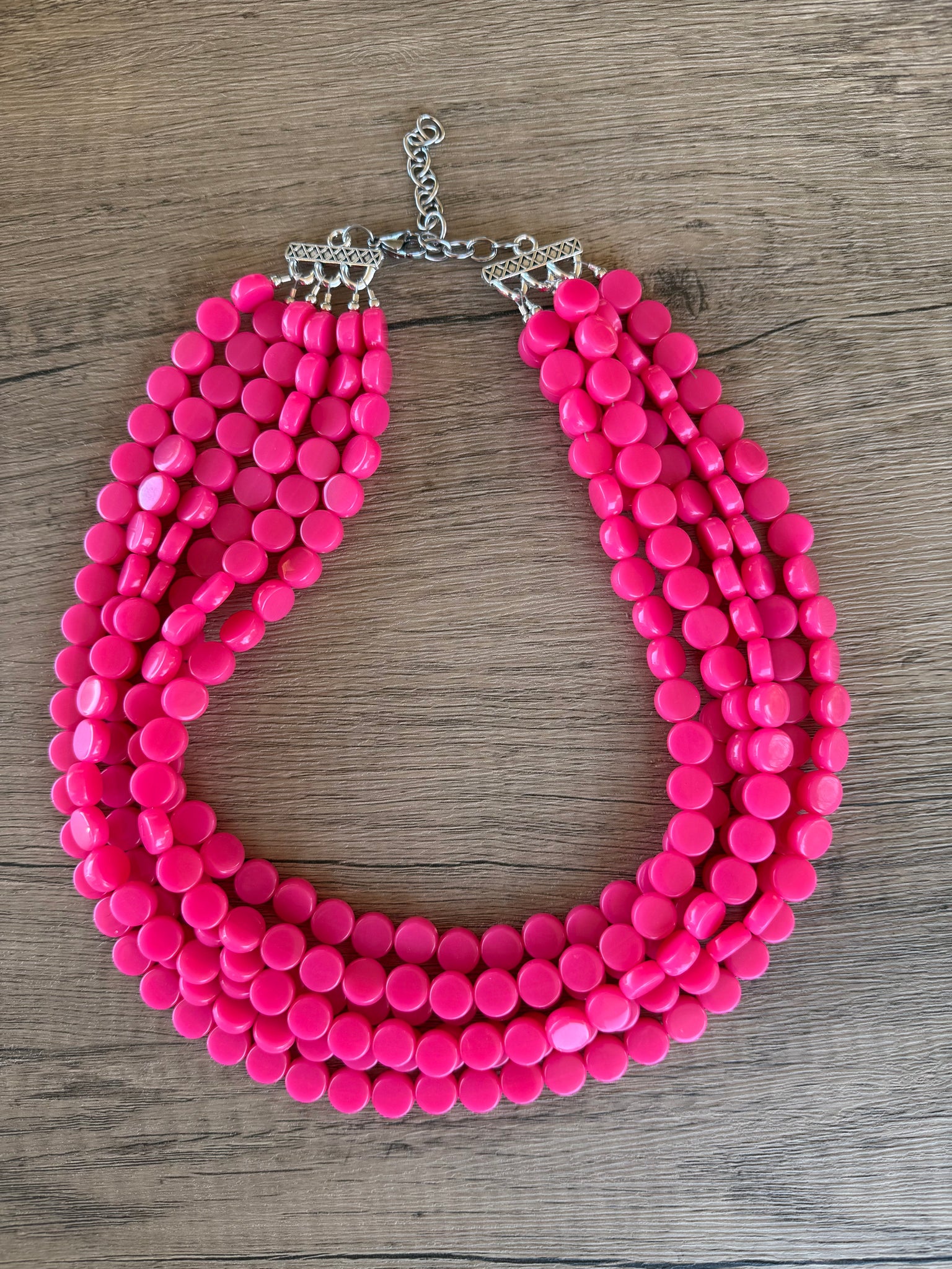 Hot Pink Acrylic Beaded Chunky Multi Strand Statement Necklace - Charlotte