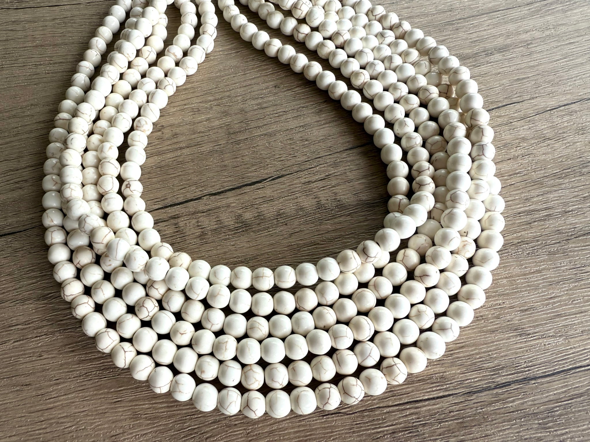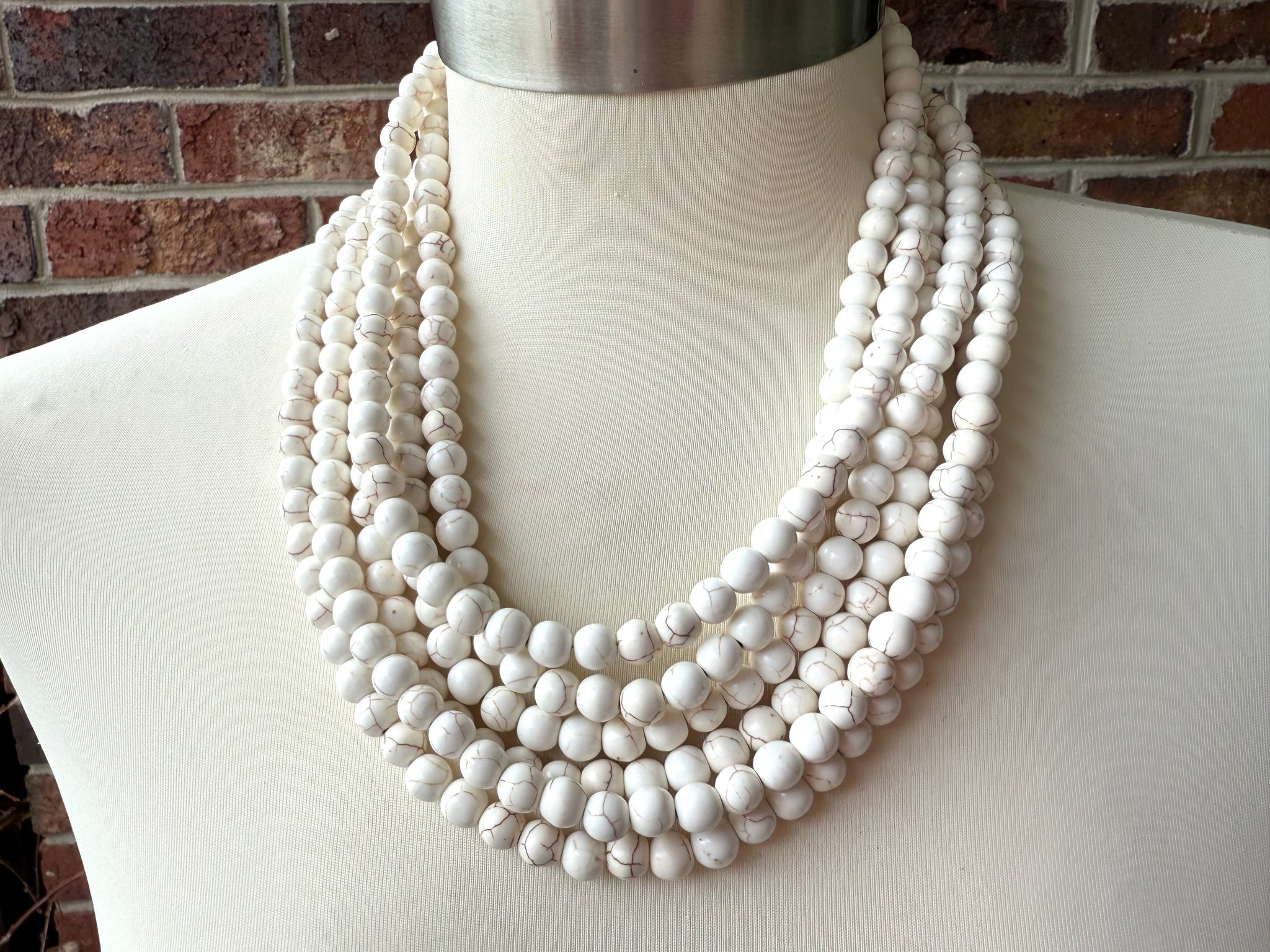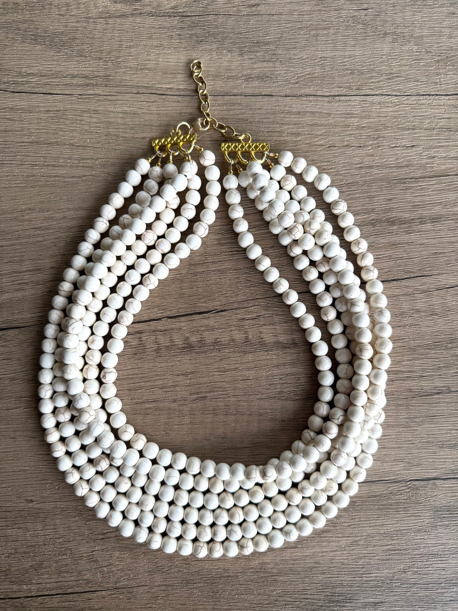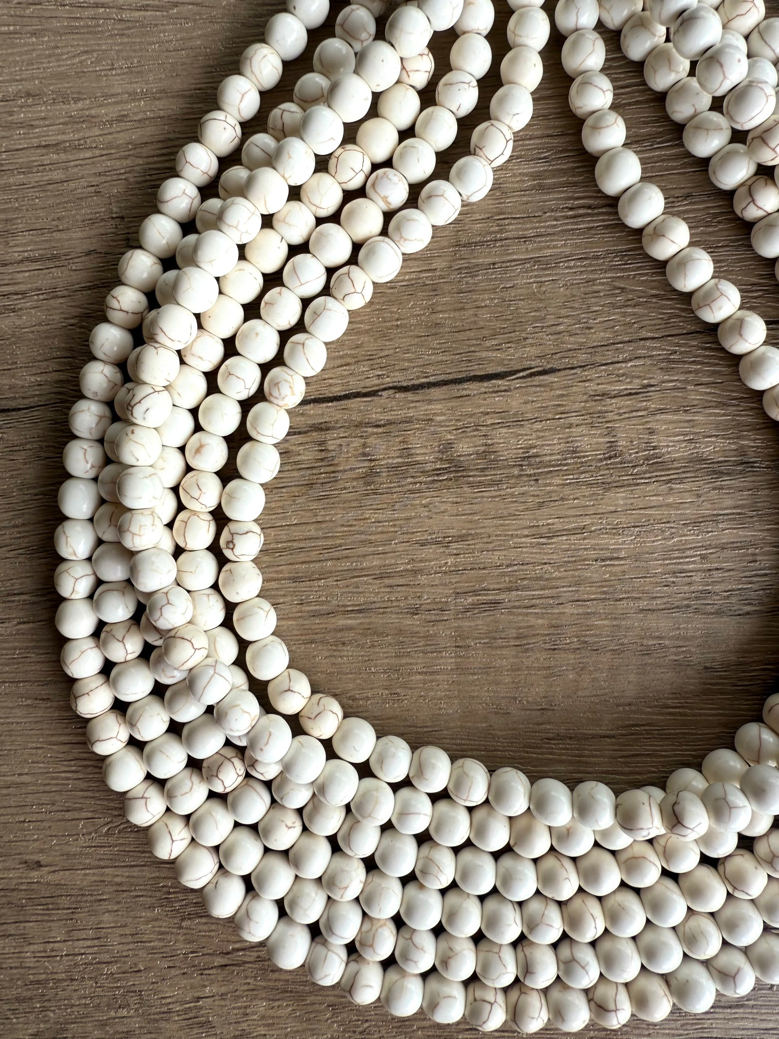 White Stone Magnesite Beaded Chunky Multi Strand Statement Necklace - Michelle