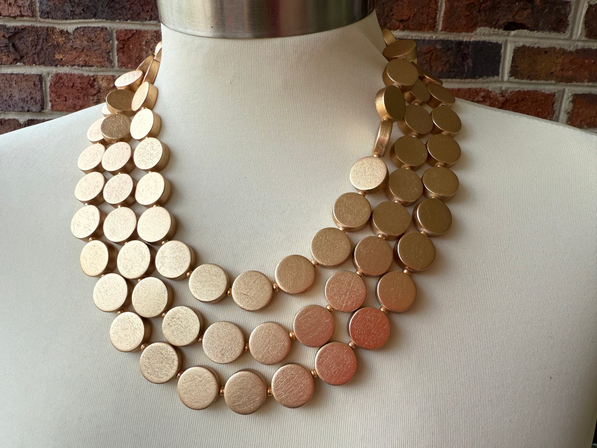 Gold Wood Bead Multi Strand Chunky Statement Necklace - Charlotte