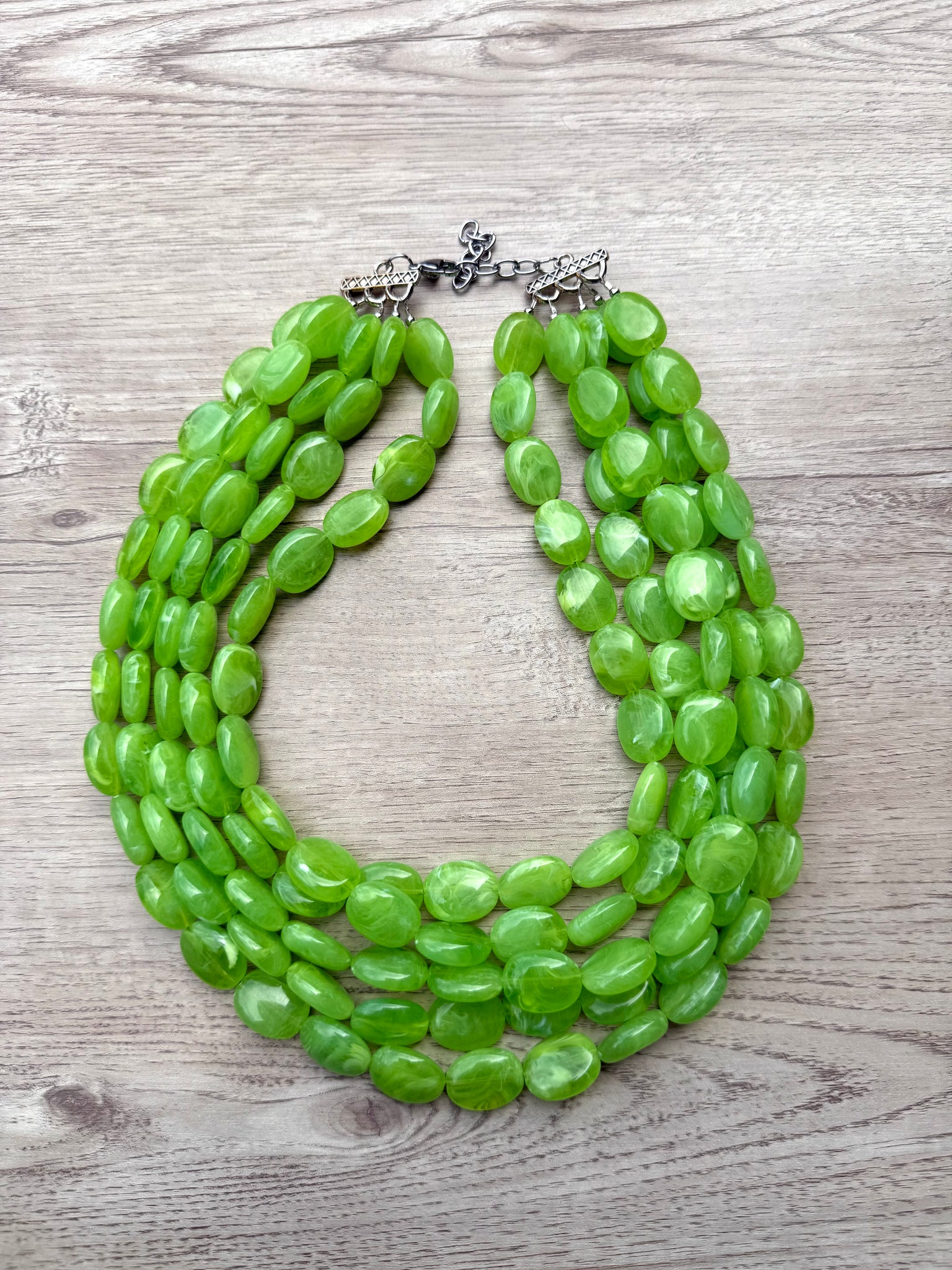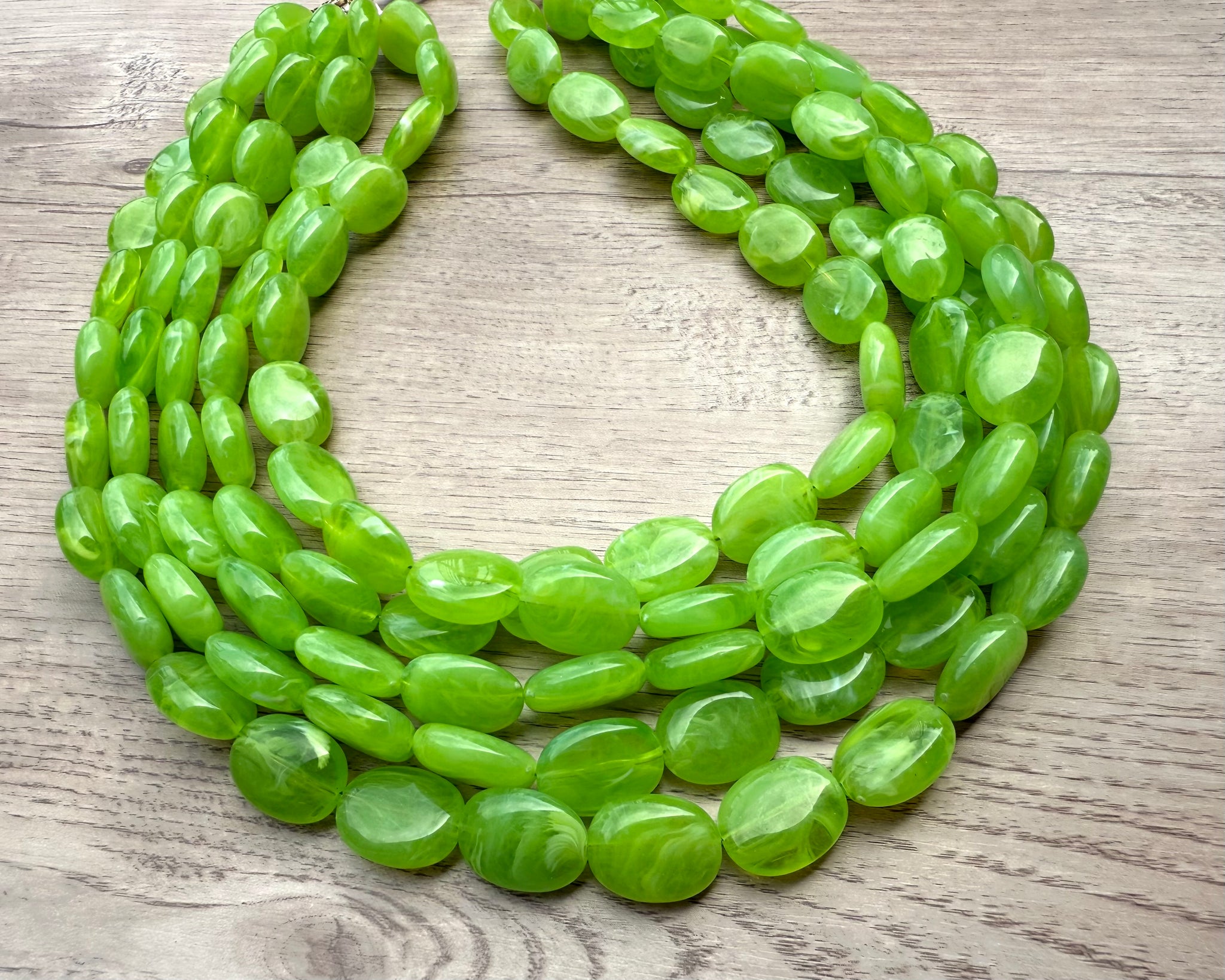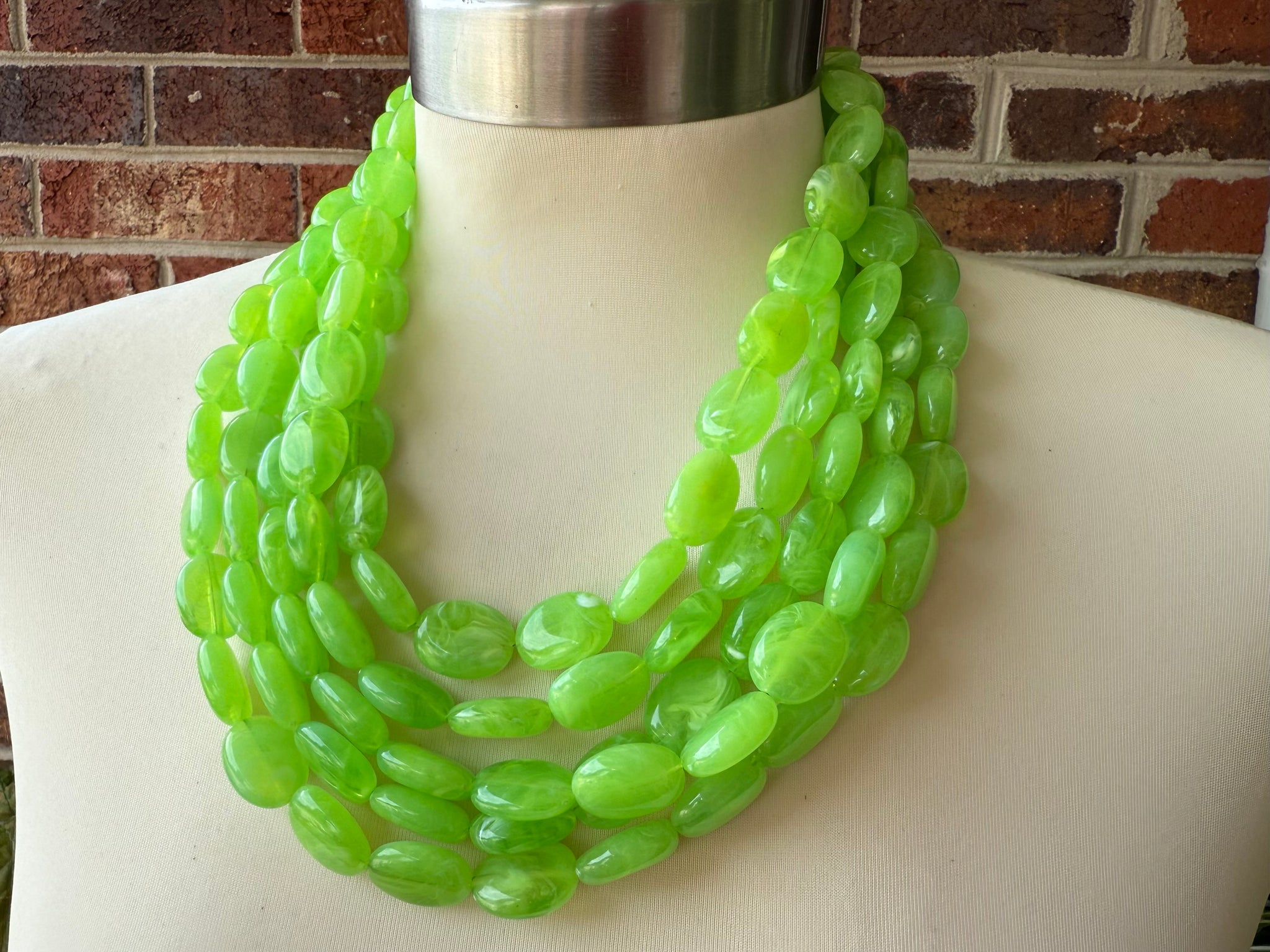 Lime Green Acrylic Beaded Multi Strand Statement Necklace - Lauren